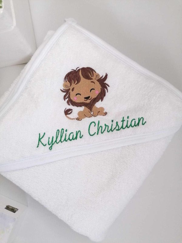 • prosop cu capișon din bumbac 100%,un element esențial în trusoul de botez, special conceput pentru a oferi confort și căldură bebelușului după ceremonia botezului. Acest prosop cu capișon are dimensiunile potrivite de 80/100 cm  garantând o textură moale și plăcută la atingere. Este prevăzut cu un capișon, asigurând astfel o uscare optimă a părului și a capului bebelușului. Prosopul este brodat cu o imagine tematică a botezului, adăugând un element simbolic și frumos acestui produs. De asemenea, este personalizat cu numele bebelușului, transformându-l într-un suvenir special și personalizat al acestui eveniment sacru. Acest prosop cu capișon devine astfel un cadou minunat pentru bebeluș și o amintire deosebită a zilei botezului, aducând bucurie și emoție în viața micuțului și a familiei sale