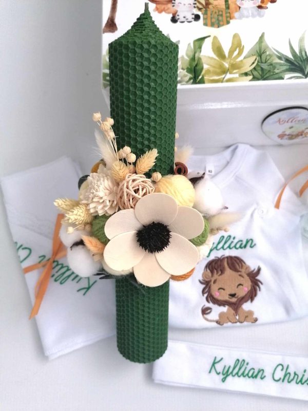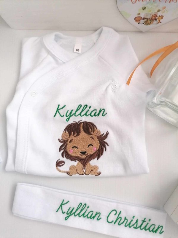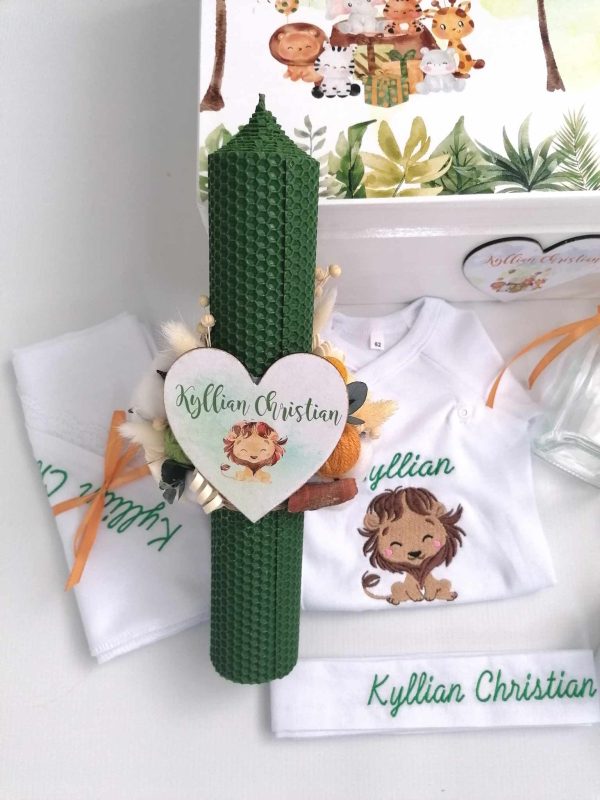 • fașă personalizată cu numele copilului este o panglică din pânză albă special creată pentru a îmbrăca și a ține copilul înfășat într-un mod unic și personalizat. Utilizată în timpul ceremoniei de botez, această panglică albă încorporează tradiția și semnificația acestui act sacru, fiind simbolul purității și al începutului unei noi vieți în credință pentru micuțul botezat.