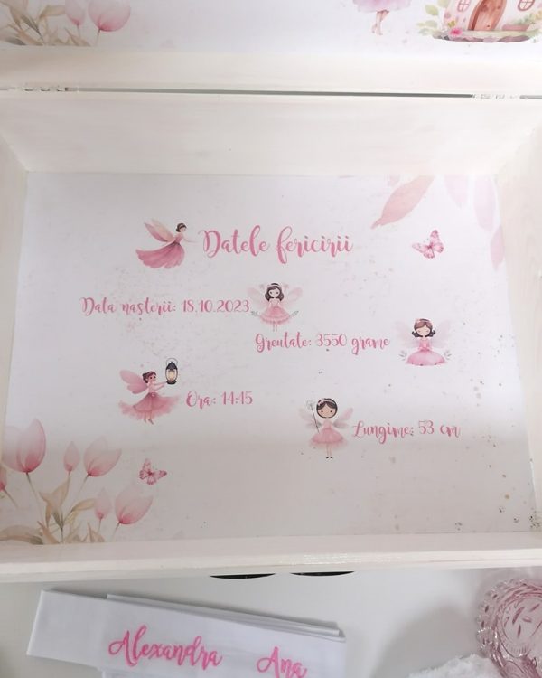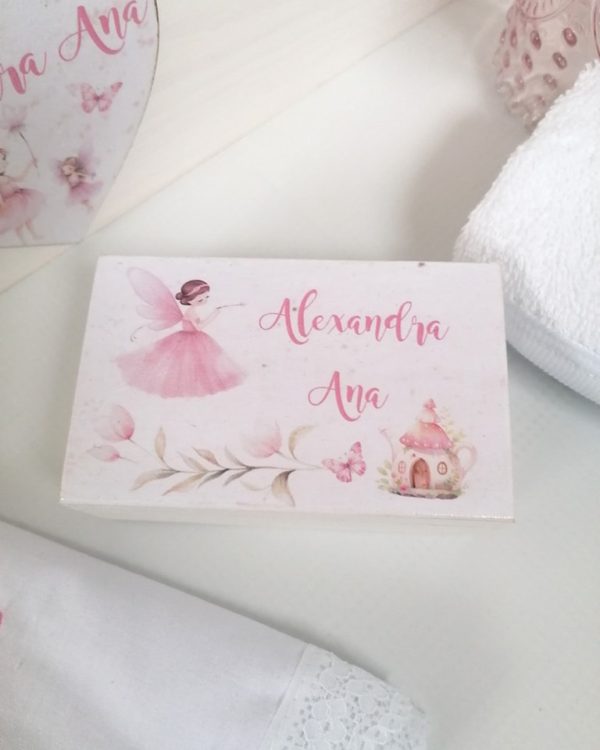 - cutie amintiri din lemn. Cutia de amintiri poate fi folosită de părinți pentru a aduna amintiri din timpul botezului( fotografii, hainuțe, pantofi, cutia cu șuvița de păr) sau orice alt obiect cu valoare sentimentală