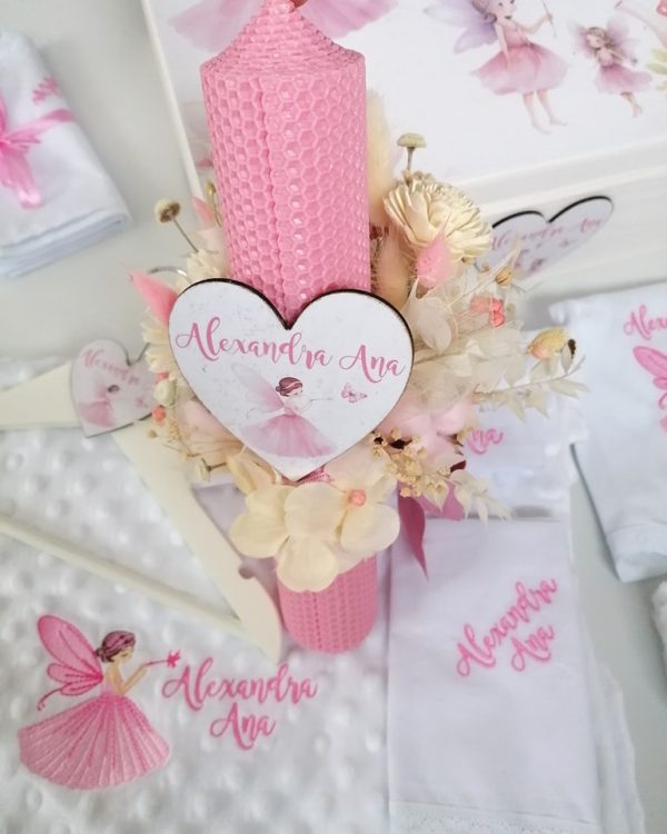 - fașă personalizată cu numele copilului este o panglică din pânză albă special creată pentru a îmbrăca și a ține copilul înfășat într-un mod unic și personalizat. Utilizată în timpul ceremoniei de botez, această panglică albă încorporează tradiția și semnificația acestui act sacru, fzaneiind simbolul purității și al începutului unei noi vieți în credință pentru micuțul botezat.